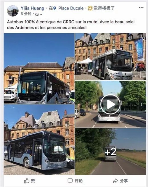 7月2日,一名中国留学生在法国,路遇“中国中车”纯电动巴士,如遇“姆巴佩”一样兴奋。