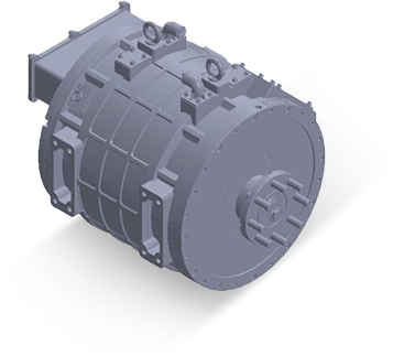 两套绕组根据工况特点进行同时工作或单独工作。电机输出扭矩大(3500Nm),重量轻(266kg),转矩脉动小。
