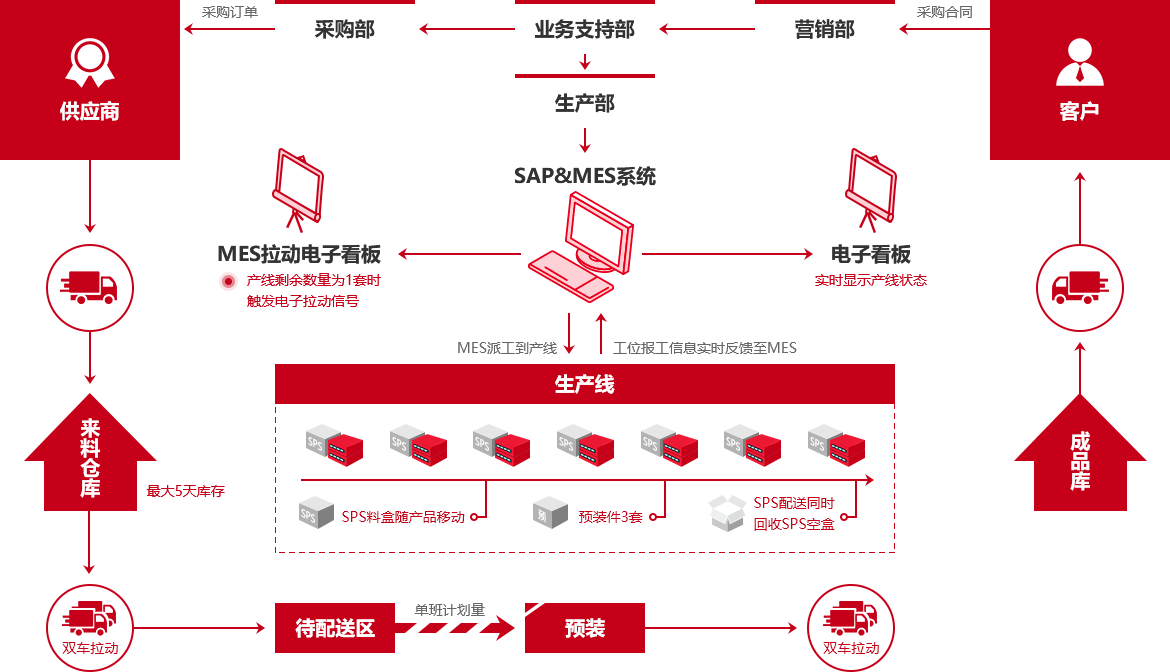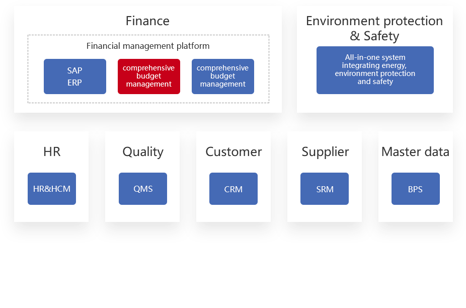 Through the five core systems of PLM, ERP, CRM, SCM and MES, to realize the intelligent, green and information management of the whole process including workshop equipment, production, personnel, quality, materials and environment and other aspects, so as to achieve the digitalization of manufacturing resources, of production process, of on-site operation, of quality management and of material management, as well as to achieve the aims of visualized production speed, real-time data collection, paperless production management and lean production logistics.